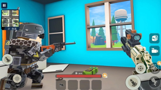 游戏采用独特的像素艺术风格,简约而不失细节的地图设计带来别具一格的视觉体验。玩家可以自由定制角色外观,从发型、服装到配饰,打造独一无二的战场形象。武器装备系统极为丰富,包含数十种枪械、近战武器和投掷物,还有绷带、医疗包等补给品帮助恢复生命值。游戏还特别设计了多种特殊道具,为每场对战增添更多战术可能性。