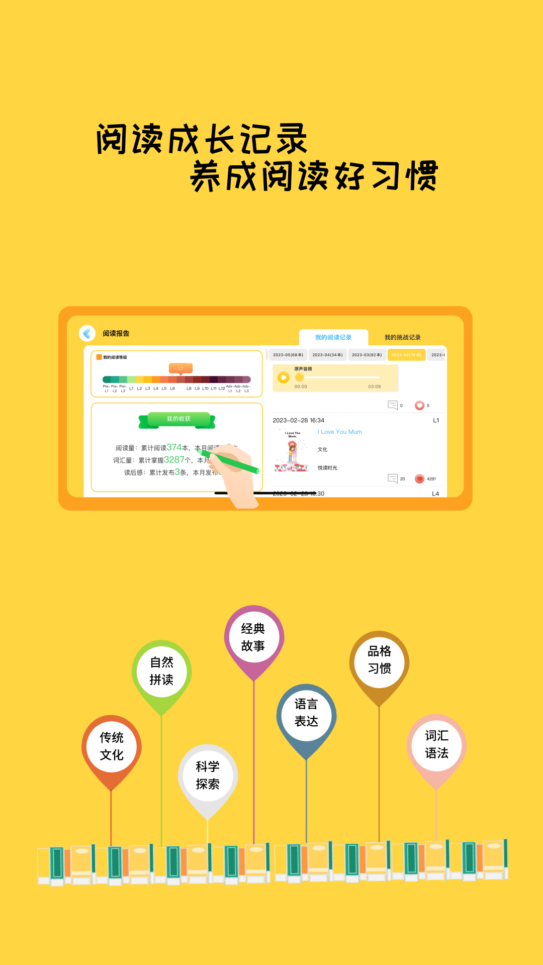 乔希家不仅提供海量绘本资源,更注重培养孩子的综合语言能力。通过听、说、读、写四个维度的系统训练,帮助孩子们全面提升英语水平。在"磨耳朵"环节,孩子们可以通过大量听力输入培养语感;在"说"的环节,平台提供丰富的音视频资源,帮助孩子练习发音和口语表达;"读"的环节则通过跟读测评功能,让孩子在模仿中提高阅读能力;最后在"写"的环节,孩子们可以通过留言互动的方式锻炼写作能力。