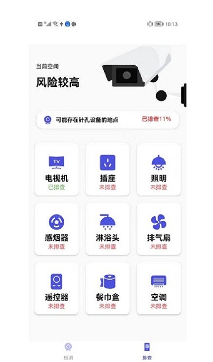 软件支持全面的风险排查管理功能,能够智能识别可能存在针孔设备的可疑地点,并提供详细的逐项排查方案,为用户带来专业级的安全防护体验。特别适合在旅游住宿、租房合租等场景使用,可有效检测各类隐藏摄像头和无线网络设备。为了提高检测准确度,建议在检测前关闭房间灯光和窗帘,在完全黑暗的环境下,将手机摄像头对准墙壁、插座、盆栽等可疑位置进行细致检查。