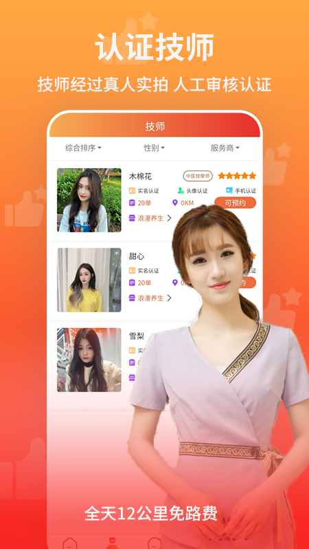技师:平台提供地图和列表两种展示模式,帮助用户快速找到附近的技师。系统会智能推荐上门速度快、评价高的技师,节省您的选择时间。