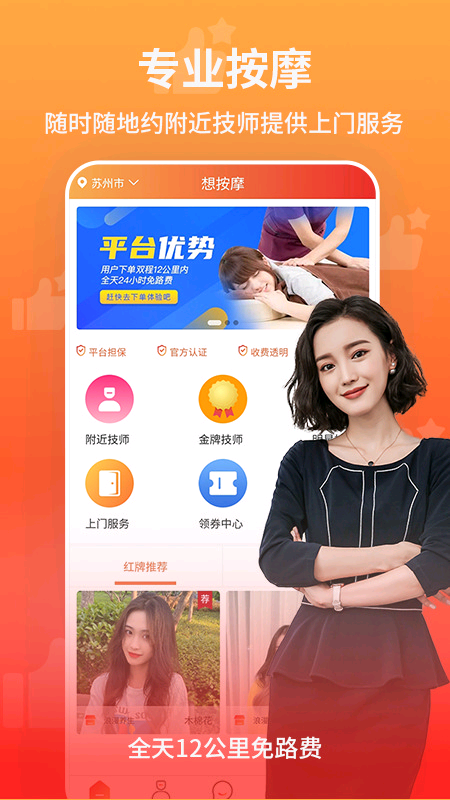 想按摩上门按摩app是一款专业高效的按摩预约平台,致力于为用户提供便捷舒适的上门按摩体验。平台汇聚了全国各地的优质按摩技师,涵盖多种按摩手法和服务项目,满足不同用户的个性化需求。通过智能匹配系统,用户可以快速预约心仪的技师,享受专业的上门服务。无论是工作疲惫后的放松,还是身体不适的调理,想按摩都能为您提供高品质的按摩解决方案。平台操作简单,服务透明,让您足不出户就能享受到专业按摩带来的舒适体验。