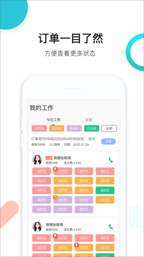 “马小二商家端”APP基于先进的互联网共享理念,创新性地将全国范围内的酒店清扫服务资源整合起来,构建了一个高效便捷的服务产业集群。平台采用线上线下深度融合的模式,入驻酒店可以轻松在线上发布清扫房源信息,而入驻的房嫂阿姨们则可以选择全职或兼职方式,通过线上接单、线下服务的方式灵活参与。这种模式不仅充分激活了线下闲置劳动力资源,还能为酒店精准匹配最合适的客房服务员,实现经济高效的服务对接。