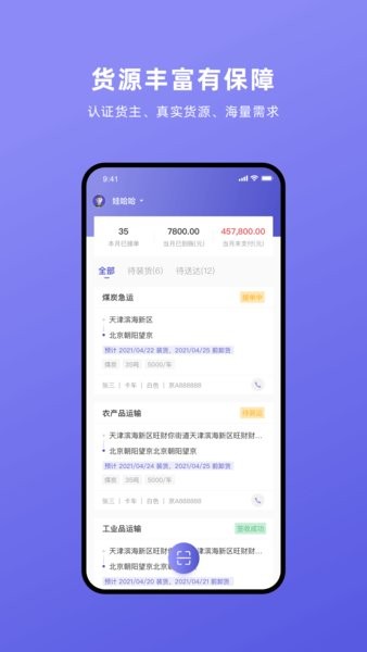 汇聚百万级活跃货车司机与货主资源,构建庞大的物流服务网络;