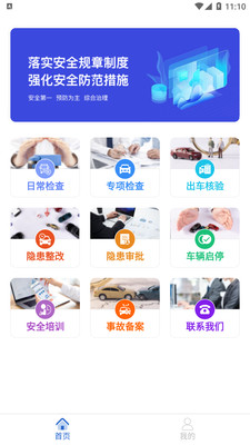 日常检查,专项检查,出车核验,隐患整改,隐患审批,车辆启停,安全培训,事故备案。