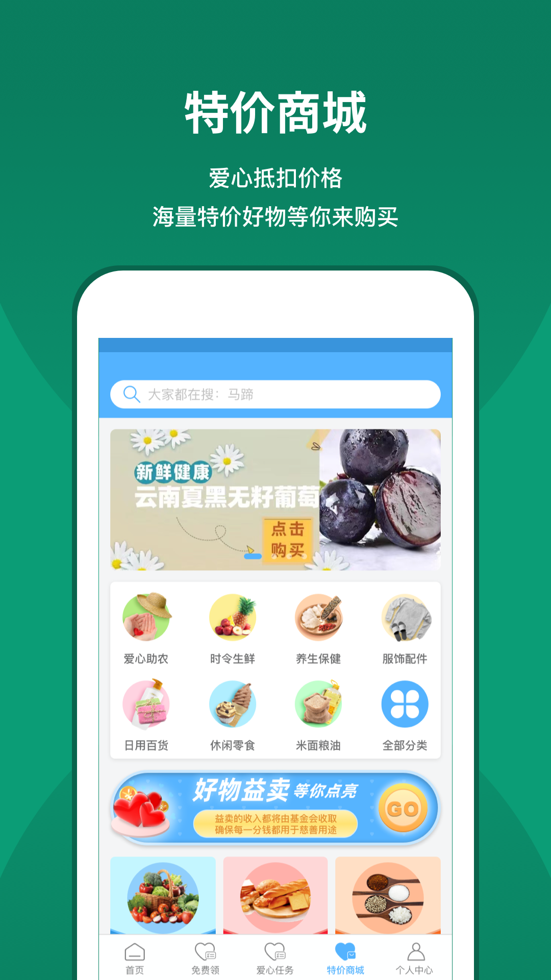 爱心抵扣价格,海量特价好物等你来购买,商品价格最高可享市场价3折优惠