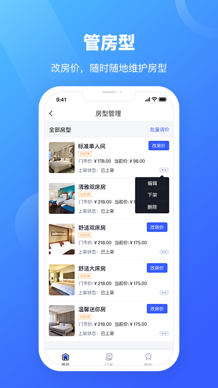 管房型功能提供全面的房型管理解决方案,商家可以随时调整房价策略,维护房型信息。无论是旺季调价还是特惠促销,都能通过手机轻松完成设置,确保房价策略与市场同步。