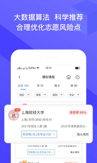3、超级严密科学的计算方法,帮助用户平台录取的几率,再结合用户的考试成绩来做出计算的,算法经过专家验证;