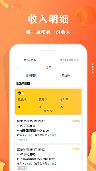 每天会自动统计订单数据信息,让大家清楚的知晓,自己一天完成了多少订单,赚了多少的钱;统计报表支持多种维度分析,帮助配送员优化工作方式和提升收入。