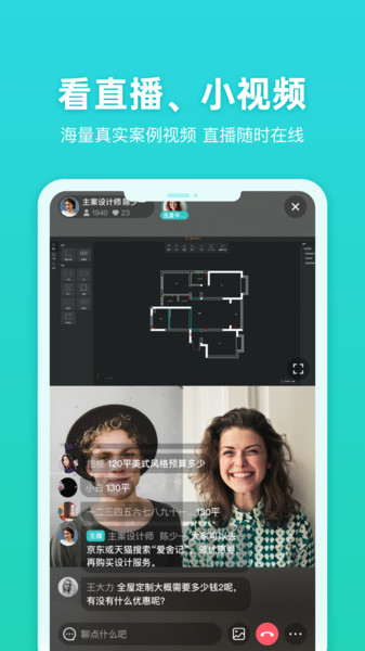 打扮家是一款专注于家居装修设计的智能平台,致力于为用户打造理想中的数字家。在这里,您可以轻松接触到海量专业设计师资源,从风格定位到方案落地,全程享受一对一专属服务。平台独创的VR实时渲染技术让您能够720度全景预览装修效果,结合AR动态场景嵌入功能,可直接将设计方案投射到您的实际居住空间,实现"所见即所得"的沉浸式体验。
