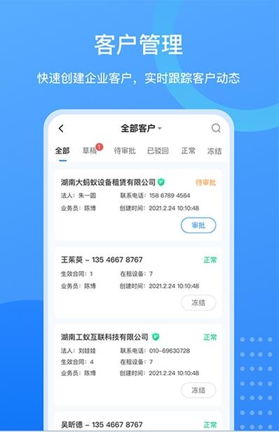 通过客户端实现在客户、设备、合同、交接机、财务等环节实现精细化高效管理,业务流程全面数字化;