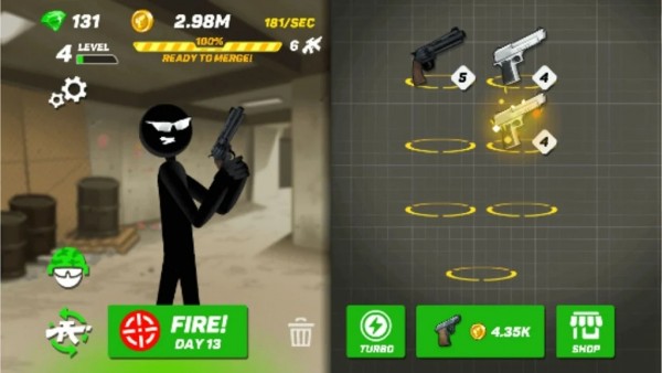 这是一款融合了休闲与合并元素的创新射击游戏。玩家需要通过合并不同类型的武器来打造更强大的枪支,然后用这些武器来射击移动的火柴人目标。游戏提供了丰富的武器库系统,玩家可以不断升级手枪性能,探索各种武器的威力组合。随着游戏进程的推进,玩家将面临更多挑战,需要不断提升射击技巧,最终成为最出色的神枪手。游戏还设置了多种成就系统,让玩家可以不断挑战自己的极限。