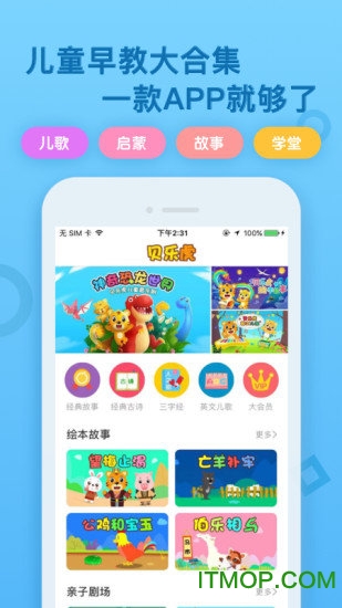 丰富的儿歌故事:汇集了宝宝最爱的流行儿歌、原创儿歌和经典童话故事,包含原创恐龙、汽车主题音乐剧;海量动画内容涵盖童话寓言、神话历史;还有传统国学经典如唐诗宋词、三字经等,满足不同孩子的兴趣需求。