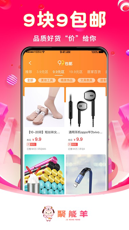 聚能羊app是一款专注于为用户提供高性价比商品的购物平台,以9块9包邮为核心卖点,致力于为消费者带来品质好货。平台不仅拥有每日更新的限时秒杀活动,还实时同步全网优惠信息,让用户轻松享受全民疯抢的购物乐趣。在这里,您可以找到各类大牌精选商品,首单及全场包邮政策更是让购物体验更加无忧。