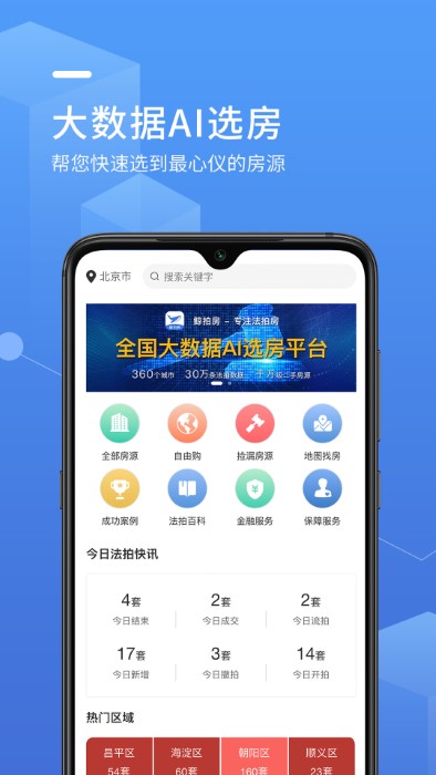 鲸湃app是一款专注于房屋拍卖领域的专业交流平台,致力于为用户提供全面、便捷的法拍房信息服务。作为国内领先的房产交易软件,鲸湃整合了全国各地的优质法拍房源,通过智能算法为用户精准匹配心仪房产,让您足不出户就能掌握最新的一手拍卖资讯。