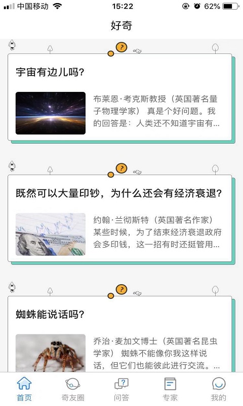 我们提供分布在全球的以科学家、艺术家、经济学家、哲学家为核心的专家资源,在您探索未知的路上与您相伴。这些专家不仅会解答您的问题,更会引导您建立系统性的思维方式。平台采用智能匹配算法,确保每个问题都能找到最适合的解答者。我们特别设计了"好奇心实验室"功能,用户可以在这里参与各种思维实验和创意挑战。通过持续优化的社区机制,我们鼓励用户之间进行深度交流,让智慧的火花在碰撞中绽放。在这里,每个好奇的念头都值得被认真对待,每个独特的见解都能获得尊重。