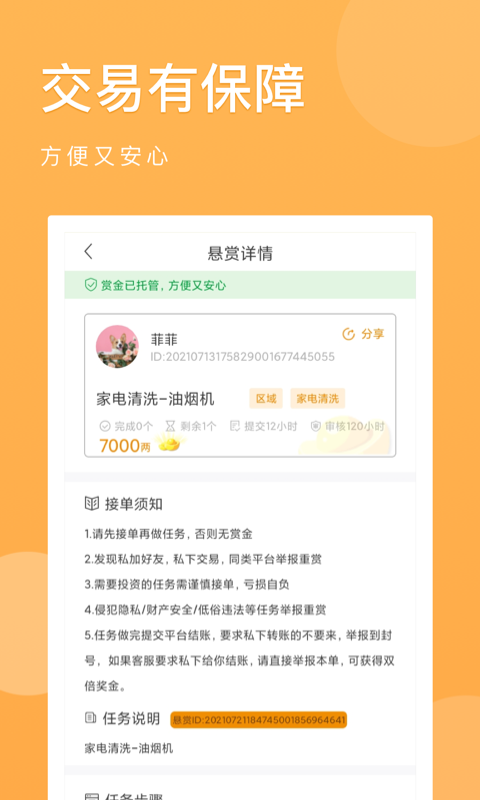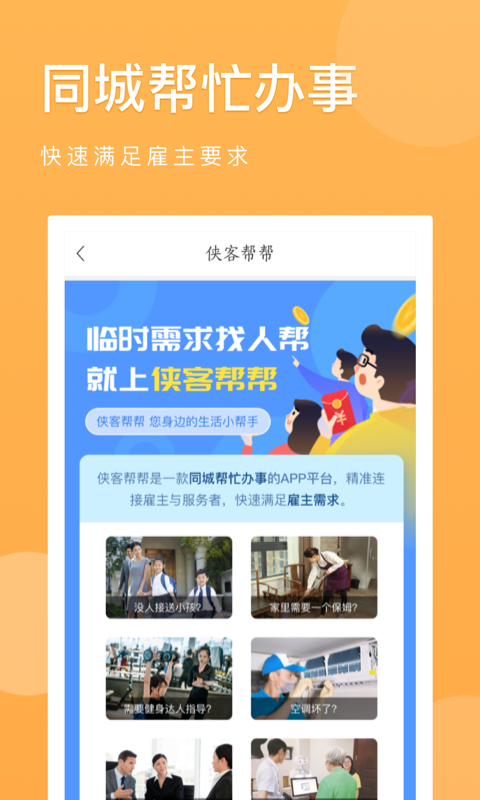 同城帮忙办事,快速满足雇主要求:基于LBS定位的智能派单系统,90%的同城急件能在2小时内完成交接,支持语音实时沟通和进度追踪。