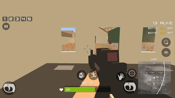 像素终结战场是一款充满刺激与挑战的休闲射击游戏,玩家将置身于一个像素风格的战场中,体验紧张激烈的生存竞技。游戏采用经典的跳伞开局模式,玩家可以自由选择降落地点,并在广阔的地图中展开冒险。随着毒圈不断收缩,你必须巧妙隐藏自己,同时寻找机会击败对手,最终成为战场上唯一的幸存者。