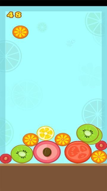 游戏玩法很简单,类似于2048:游戏画面上分每次将出现各种各样的水果,玩家要做的就是选择一条纵坐标将这个水果扔下去(类似时间暂停的俄罗斯方块)。玩家需要精准控制水果的落点,让相同水果能够相互接触。当两个相同水果接触时,它们会合并成更高级的水果,这个合成过程会带来满满的成就感。游戏难度会随着水果堆积高度而增加,需要玩家合理规划空间,避免水果堆积过高导致游戏失败。
