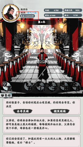 本作以文字冒险的形式完美呈现了修仙世界的无穷魅力。在这个充满无限可能的修真世界里,你将从一个默默无闻的凡人开始,通过不断修炼提升自己的灵根资质。游戏提供了丰富多样的玩法系统,每次境界突破都能带来意想不到的惊喜与丰厚回报。你可以潜心修炼,也可以广收门徒,打造属于自己的修仙传奇。