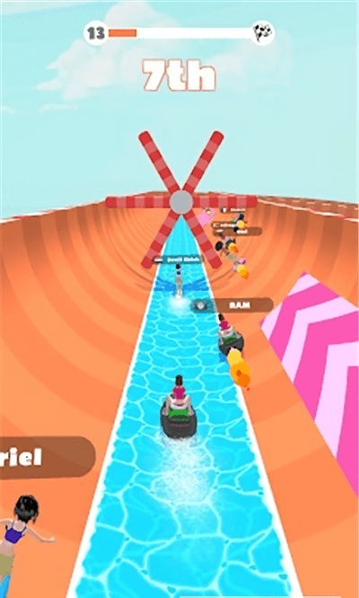 《滑梯速度赛》是一款充满夏日气息的休闲跑酷手游,告别传统赛道,带你体验清凉刺激的水上滑梯竞速!游戏采用明亮清新的卡通画风,碧蓝的水道与色彩缤纷的滑梯构成活力四射的水上乐园。只需轻触屏幕控制角色左右移动,就能感受俯冲时水花飞溅的快感。无论是蜿蜒的螺旋滑梯还是陡峭的垂直赛道,都需要你灵活躲避障碍、收集加速道具。多人实时对战模式更让游戏乐趣倍增,快来和全球玩家一较高下吧!