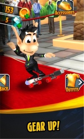 玩家需要在高速奔跑中完成各种高难度动作,包括精准跳跃、障碍闪避和特技滑行,同时寻找隐藏的秘密路线来甩开狗仔队。游戏设置了丰富的收集要素,玩家可以收集金币来购买时尚服装、独特装备和性能各异的滑板。装备系统相当完善,玩家可以自由搭配喜欢的滑板和服装造型。游戏还提供了多种助力道具,帮助玩家在关键时刻摆脱狗仔皮特的纠缠。