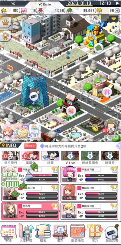 经营要素丰富多样,玩家可以管理宿舍、练习室、演唱会场馆、录音室、快闪店等多样化的经纪公司建筑,打造专属的娱乐帝国。每个设施都能为艺人提供不同的增益效果。