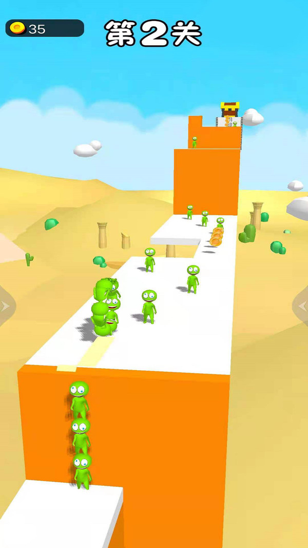 游戏最大的亮点在于其独特的团队协作玩法。玩家需要依靠不断壮大的橡皮人队伍来克服各种障碍,人数越多就越容易跨越更高的障碍物。游戏采用了精美的3D画面风格,橡皮人角色设计可爱生动,还有多种皮肤可供收集和更换。游戏场景丰富多样,从城市街道到野外丛林,每个场景都设有独特的障碍和机关。