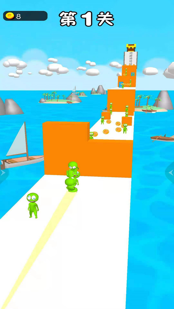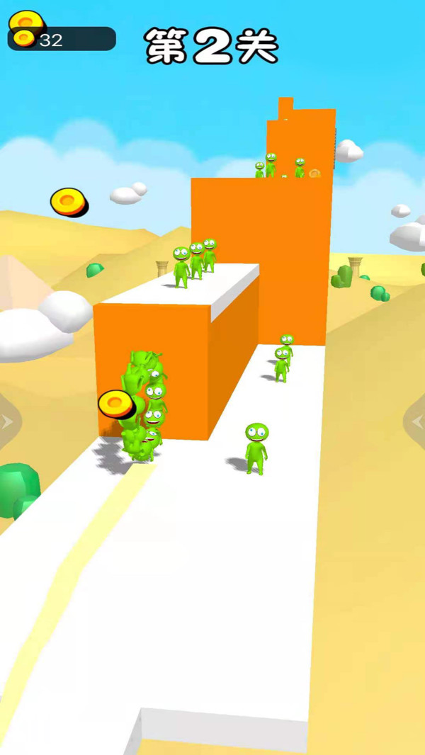 抱团向前冲是一款创新的堆叠类跑酷游戏,它将传统的跑酷玩法与团队协作元素完美结合。游戏中,玩家需要操控一个由橡皮人组成的队伍,通过左右移动来调整行进方向。随着游戏的进行,玩家可以收集更多的橡皮人,使队伍不断壮大。这些橡皮人不仅可以增加队伍的高度,还能帮助玩家跨越各种障碍墙。游戏设置了丰富的关卡挑战,每个关卡都有独特的设计,玩家需要带领自己的橡皮人团队突破重重阻碍,最终抵达终点才能获得胜利。