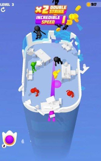 有各种邪恶的小人盯着你,变身超级英雄,拯救每一层楼的居民。敌人种类丰富,从普通暴徒到精英boss应有尽有。红色小人是坏人,需要消灭,绿色小人是居民,不要开枪,打击罪犯。游戏加入了道德判断系统,误伤平民会影响最终评分。随着主角的旋转,会出现一条红色的射击线,当瞄准敌人时,点击屏幕消灭敌人。这种创新的瞄准系统让战斗更加精准且富有策略性。