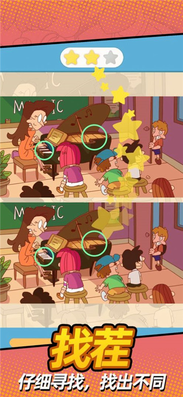 游戏收录了数百张高颜值精美图片,每张图片都经过专业美术团队精心绘制,色彩搭配和谐,细节处理到位。玩家需要仔细观察两幅看似相同的图片,找出其中细微的差别,这种玩法既锻炼观察力又充满成就感。随着游戏进程,关卡难度会逐步提升,从简单的物品寻找逐渐过渡到需要极强观察力的像素级差异对比,为玩家带来持续不断的挑战乐趣。游戏还支持社交分享功能,玩家可以将自己的成绩分享给好友,展开趣味竞赛。