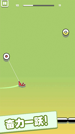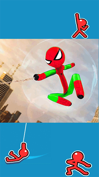 按下你的屏幕,用你的抓钩钩住你的火柴人并释放放手,你需要控制好你的抓钩,它是获胜的关键,注意观察最佳钩点位置。