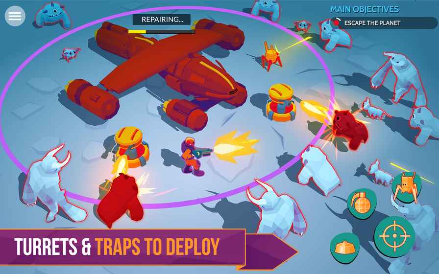 【战术射击】创新的双摇杆操控系统完美适配移动端,既保留了硬核射击游戏的精准要求,又加入了慢动作闪避等创新机制。面对成群的外星生物时,合理的走位比盲目射击更重要。