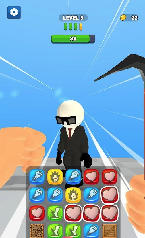 匹配斗士是一款充满创意与激情的休闲格斗游戏,将传统消除玩法与热血格斗完美结合。在游戏中,玩家需要通过快速匹配相同招式来发动强力攻击,体验拳拳到肉的打击感。游戏采用独特的连线消除机制,每场对决都充满策略性与紧张感,你需要不断思考如何组合招式,同时还要提防对手的反击。精美的画面表现和流畅的操作手感,让每位玩家都能享受到酣畅淋漓的战斗乐趣。