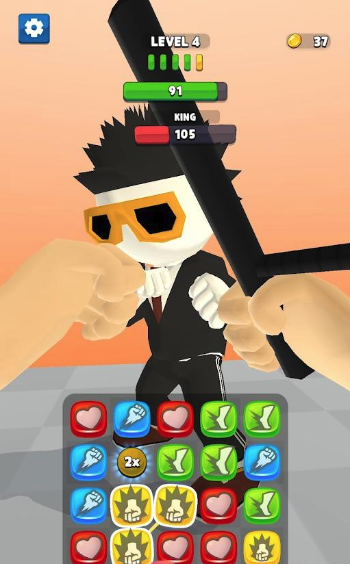 匹配斗士游戏中融合了格斗和消除玩法元素,当你和对手对峙的时候,需要将相邻并且相同的招式连接起来进行匹配才能发起进攻,你连接的招式越多,攻击力就越强,而且速度一定要快,否则对手会随时反击,如果你不能及时战胜对手,不但不能顺利到达下一关,还有可能送命。游戏设计了数十种独特的格斗招式,每种招式都有不同的攻击效果和连招加成,玩家需要根据战况灵活调整策略。随着关卡推进,对手的AI也会越来越强,考验玩家的反应速度和战术思维。