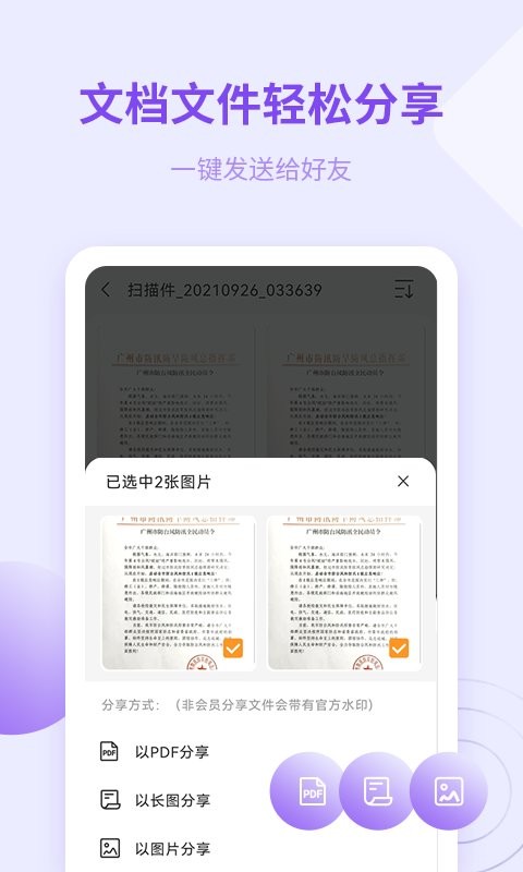 智能文档管理系统:支持文档重命名、批量分享与合并,可按需删除或新建文档,提供历史文档快速检索功能,还能将文档批量保存至手机相册,实现高效文件管理。