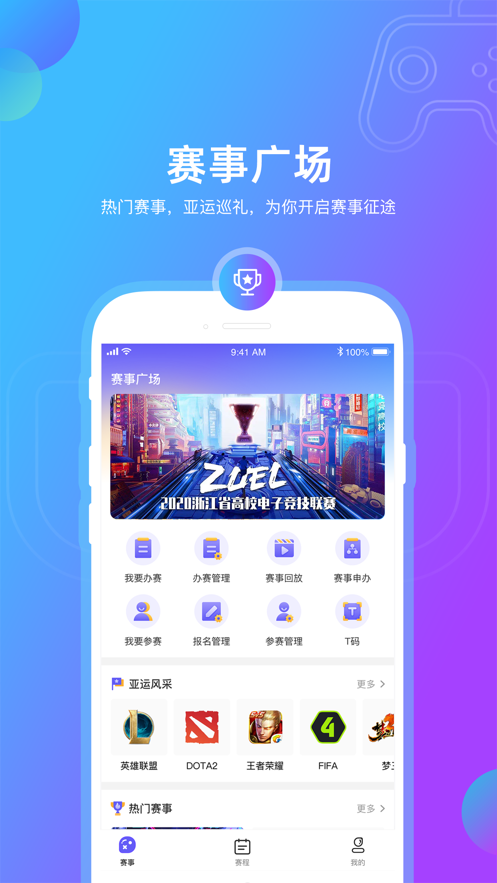 【赛事广场】热门赛事专区实时更新国内外重大电竞赛事,亚运巡礼板块独家呈现亚运会电竞项目精彩内容,更有赛事推荐算法为你精准匹配感兴趣的赛事活动。