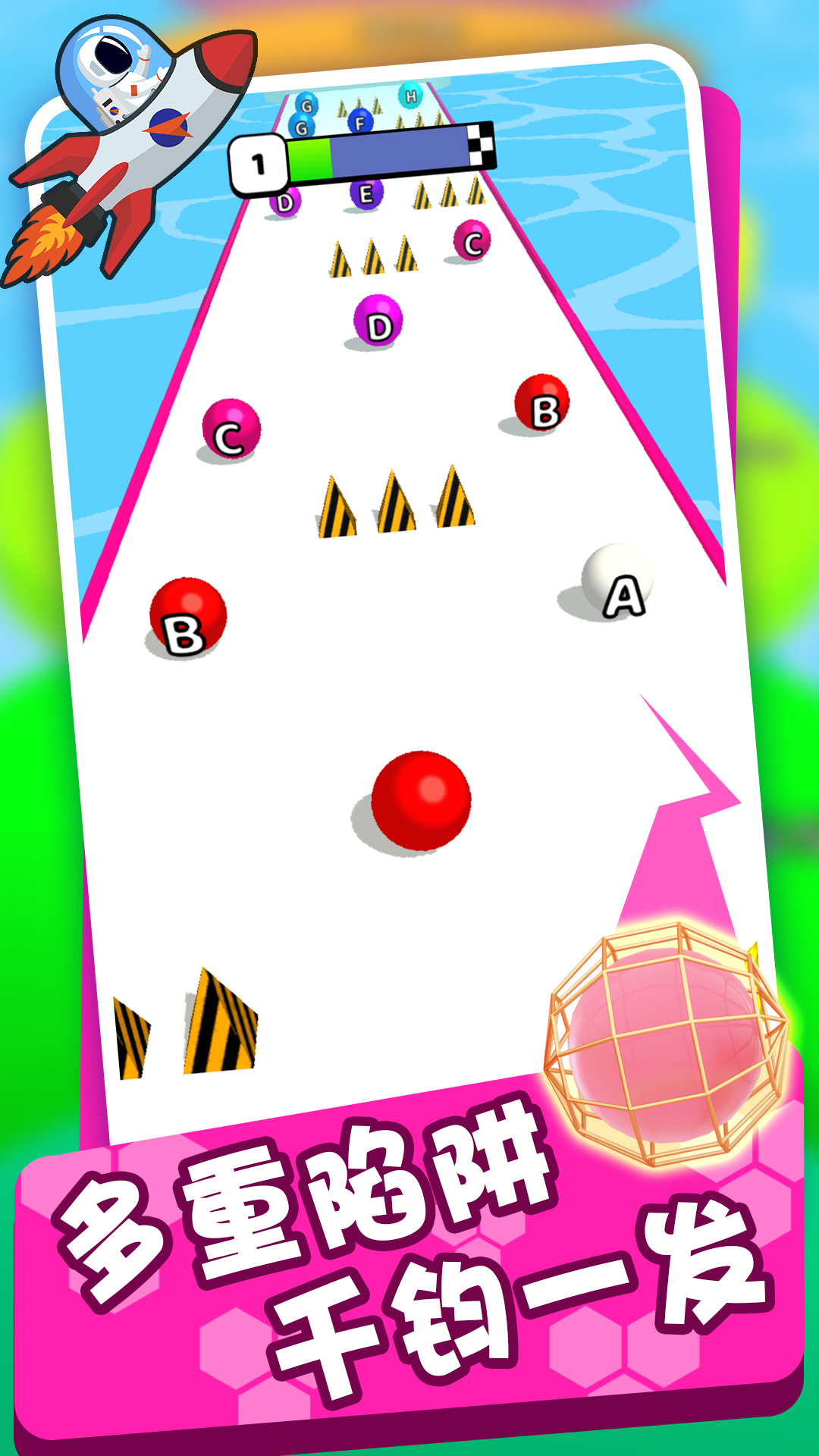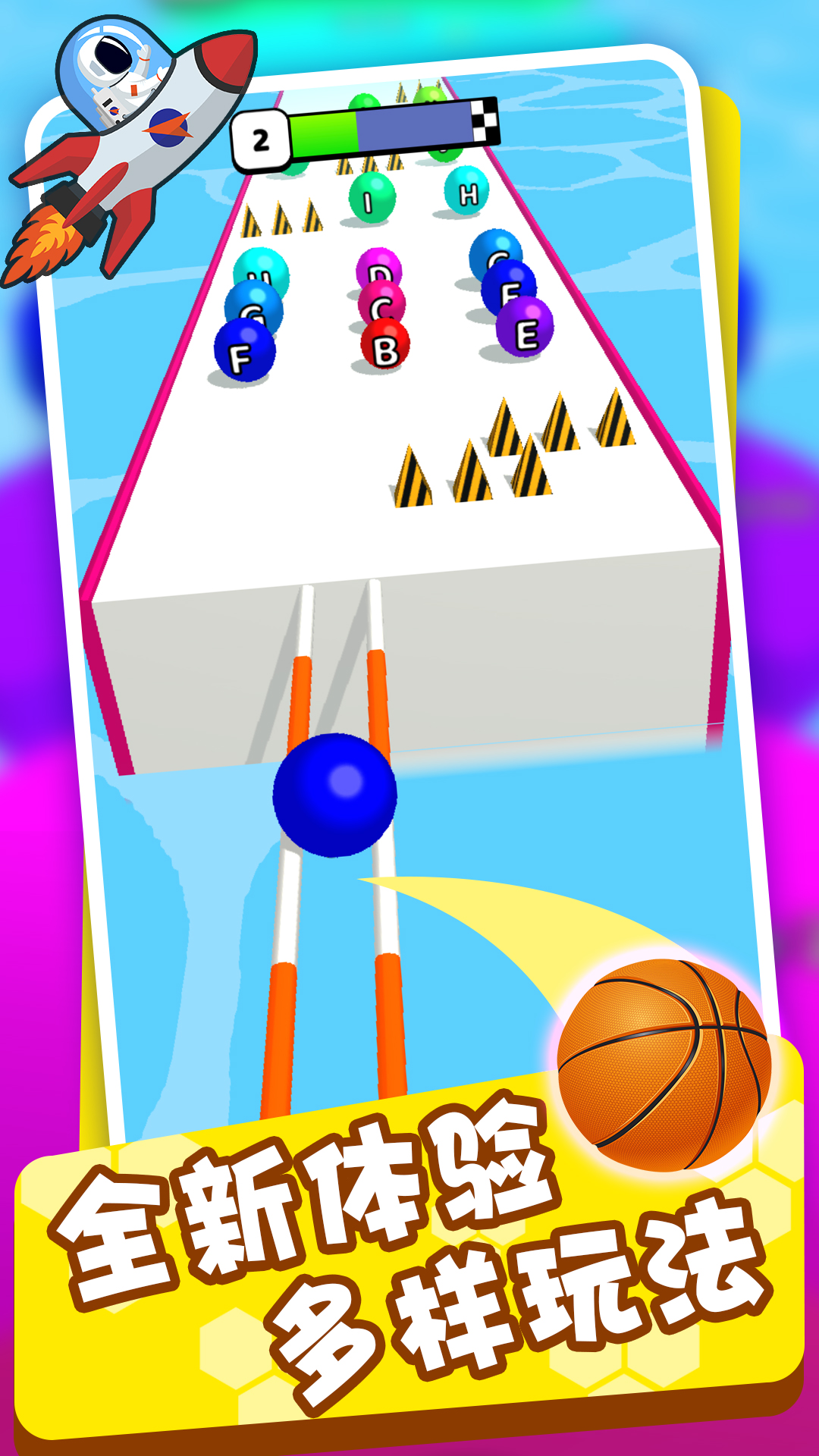 游戏的核心玩法是合并相同的球球并使其变得更大。玩家需要精准控制球球的移动和跳跃时机,既要避开危险的尖刺障碍,又要抓住机会合并同类球球。成功越过终点线即可完成关卡挑战。随着游戏进程的推进,玩家可以升级初始球球,赚取更多金币来解锁新内容。游戏采用从A到Z的字母系统,让玩家在轻松愉快的跑酷过程中还能学习字母知识,寓教于乐两不误。
