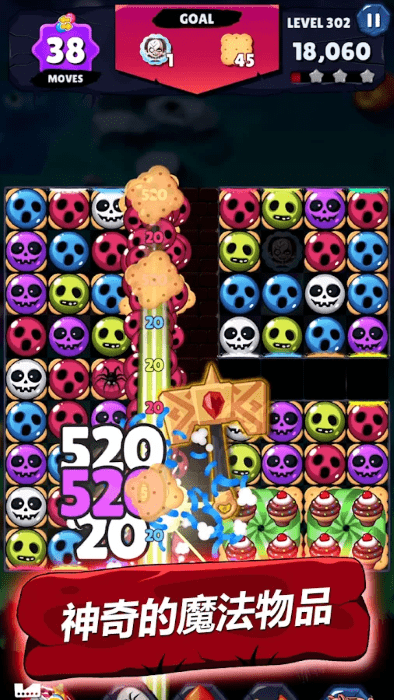 游戏创新性地加入了奇异吸引力爆破模式,在这个模式下消除会产生引力场,将周围图案吸引过来形成连锁反应,考验玩家的预判能力。经典模式则回归消除游戏本质,要求玩家在规定步数内达成特定分数目标,极具挑战性。游戏音乐制作精良,背景音乐采用轻快的旋律配合万圣节主题,消除音效清脆悦耳,营造出轻松愉快的游戏氛围。社交系统也很完善,玩家可以与好友比拼分数,分享游戏心得。整体而言,这是一款集休闲娱乐与策略挑战于一身的精品消除游戏。