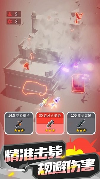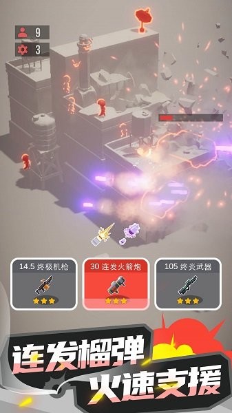 在爆破行动中,玩家需要运用精准的枪法和战术意识消灭所有敌对目标。游戏特别设计了地下掩体系统,部分敌人会藏身于地底工事中,这时就需要使用火箭筒等重型武器轰开地面。战斗胜利后会获得三个随机增益效果,包括射速提升、伤害加成等属性强化,玩家需要根据当前武器特点和作战风格做出最优选择。随着游戏进程推进,敌人会变得越来越狡猾,武器装备也会不断升级,保持战术灵活性是制胜关键。