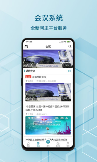 会议系统:全面整合神经外科行业各类学术活动信息,包括培训班、学术峰会等专业会议。系统提供从会议预告、在线报名到直播观看、会后报道的一站式服务,让医生随时随地掌握行业动态,参与学术交流。通过智能推送和个性化推荐,帮助医生高效获取有价值的会议信息。