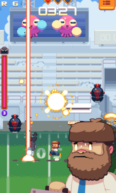这名公务员手持着神奇的公文包,里面能释放出各种特殊障壁来阻挡爆弹,与此同时玩家也要捡取爆弹爆炸后所掉落的金币,以便提升公文包的功能。总而言之本作会是一款十分考验玩家回避技巧的游戏。