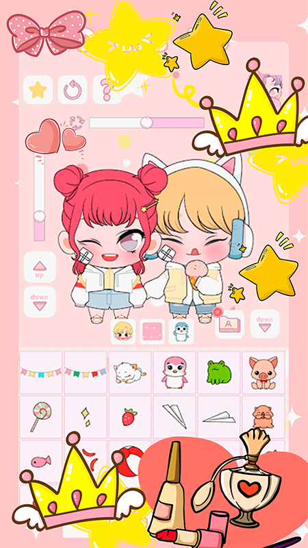 你还可以装饰自己的游戏屏幕,添加角色和可爱的贴纸,甚至可以让宠物一起参与。在游戏的美妆世界中,你可以结交新朋友,帮助他们做装扮,与小伙伴们互动交流。
