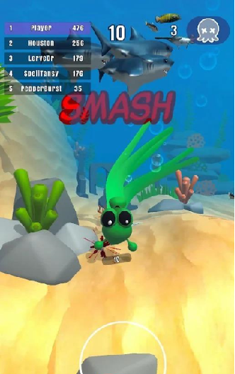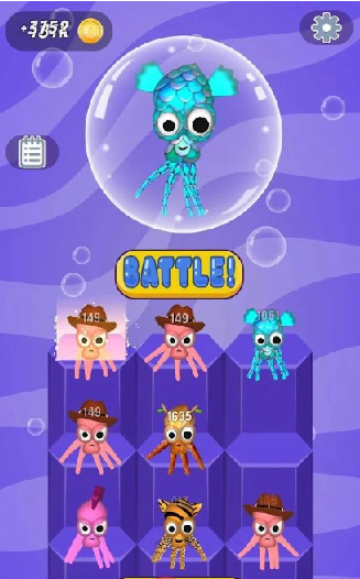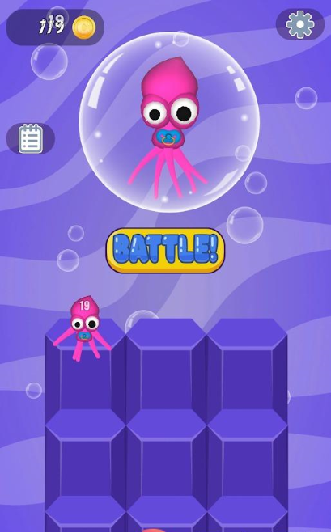 点击【BATTLE】开始比赛,滑动屏幕控制海怪收集更多的物品,以增大自己的体积,让自己变得更强大。