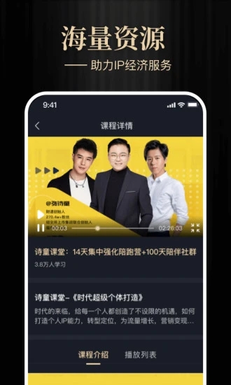 课程体系包含6大知识模块,涵盖商业模型设计、OMO私域运营等前沿领域,与200+行业KOL深度合作。采用"视频+直播+实训"的立体教学模式,配套智能学习路径规划,学员完课率提升至85%。特别设立的"大师问答"板块,支持专家1v1咨询服务,日均解决用户问题500+个。