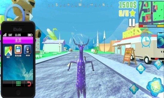 游戏最大的特色就是允许玩家在城市之中为所欲为、大闹四方。通过完成各种破坏任务来提升自己的"鹿灾等级",并与萌萌哒的动物们展开对抗。游戏内部隐藏着大量彩蛋内容,从建筑物到NPC角色都设计了丰富的互动元素。作为一只特立独行的鹿,你可以在街上任意驰骋,既能优雅地站立行走,也能快速奔跑,还能利用锋利的鹿角作为武器。游戏中的每个角色都充满个性,各种沙雕行为让人忍俊不禁。