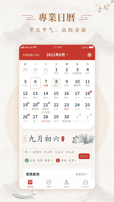 权威古籍,专业择日:助你把握先机,顺时而为,事半功倍。结合传统黄历与现代算法,为您提供最佳日程建议。