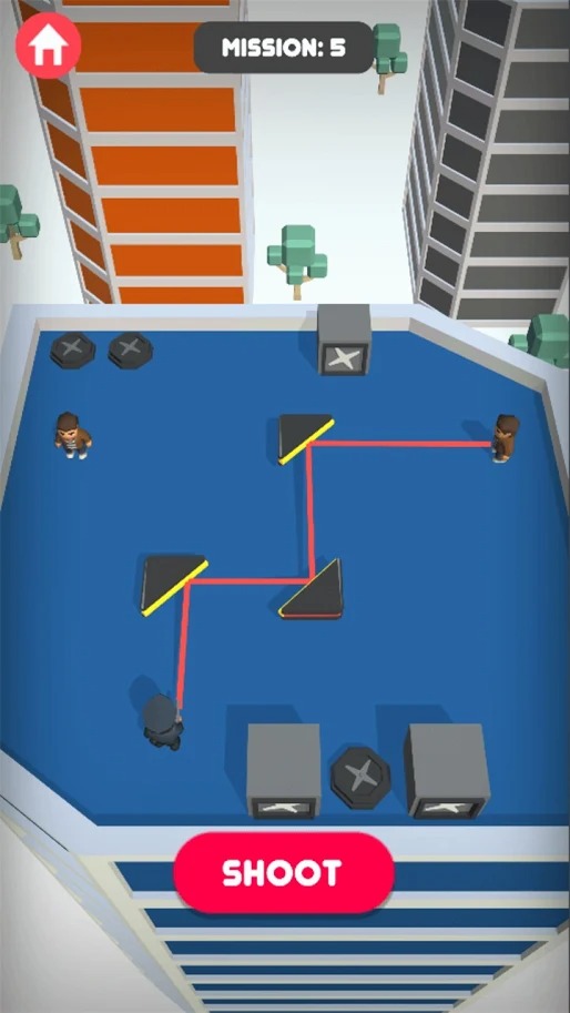 3、各种关卡随你畅玩,注意在自己的弯曲射击的路线进行预估,让你能够通过路线完成对敌人的射杀。