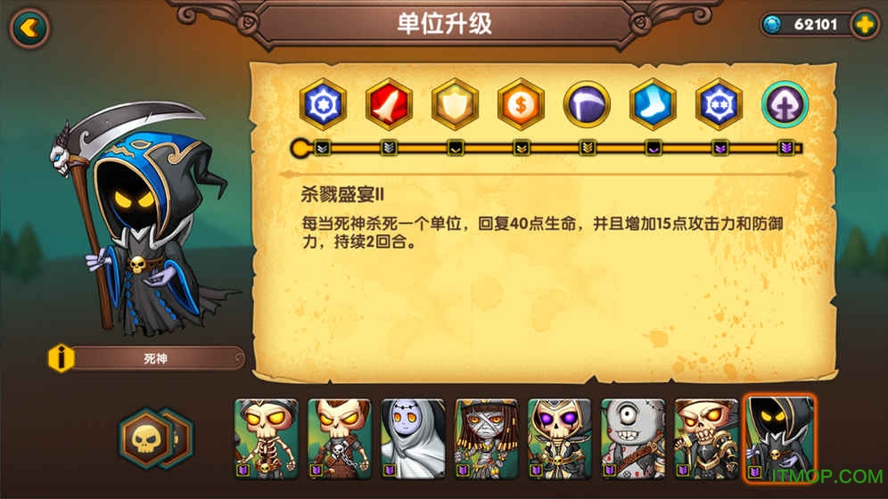养成系统:游戏采用独特的兵种培养机制,玩家可以通过消耗钻石来永久提升部队属性。每个属性栏位支持多次升级,玩家可以根据自己的战术风格进行针对性强化。值得注意的是,每个兵种在升级后都会显示专属等级标识,这不仅能直观反映部队实力,还能帮助玩家评估当前关卡难度。