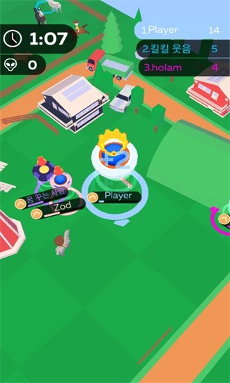警报!警报!外星人正在大举入侵地球!作为外星侵略者的一员,你将驾驶飞碟展开一场惊心动魄的破坏行动。游戏设定在一个充满活力的城市中,你可以肆意摧毁建筑、绑架人类和动物,用你的UFO制造各种混乱。随着绑架的生物越来越多,你的飞碟会不断变大,从而能够吞噬更大的目标。但要特别小心其他玩家控制的飞碟,他们同样野心勃勃想要称霸地球。一旦他们的飞碟体积超过你,你反而可能成为他们的猎物!每局游戏只有短短2分钟时间,在这紧张刺激的倒计时中,你必须快速行动,尽可能多地吞噬目标来提升自己的实力。听起来是不是很刺激?那就赶快加入这场疯狂的飞碟大战吧!