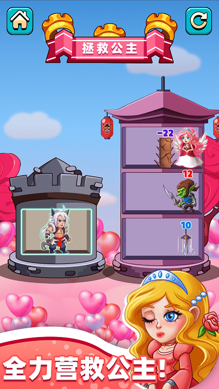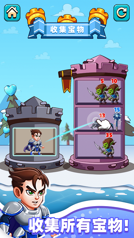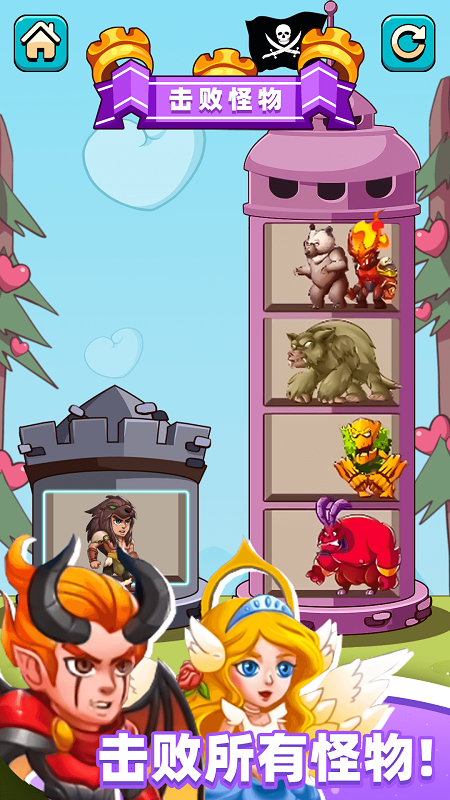 游戏的主要玩法包括击败各种怪物和敌人,通过战斗获得经验值来解锁新技能,收集资源来强化角色能力,以及保护自己的城堡不被入侵。随着游戏的进行,玩家将有机会获得各种神奇的宝物,这些宝物不仅能提升角色属性,还能解锁特殊能力。最终目标是成为整个王国最强的英雄,完成拯救公主的使命。